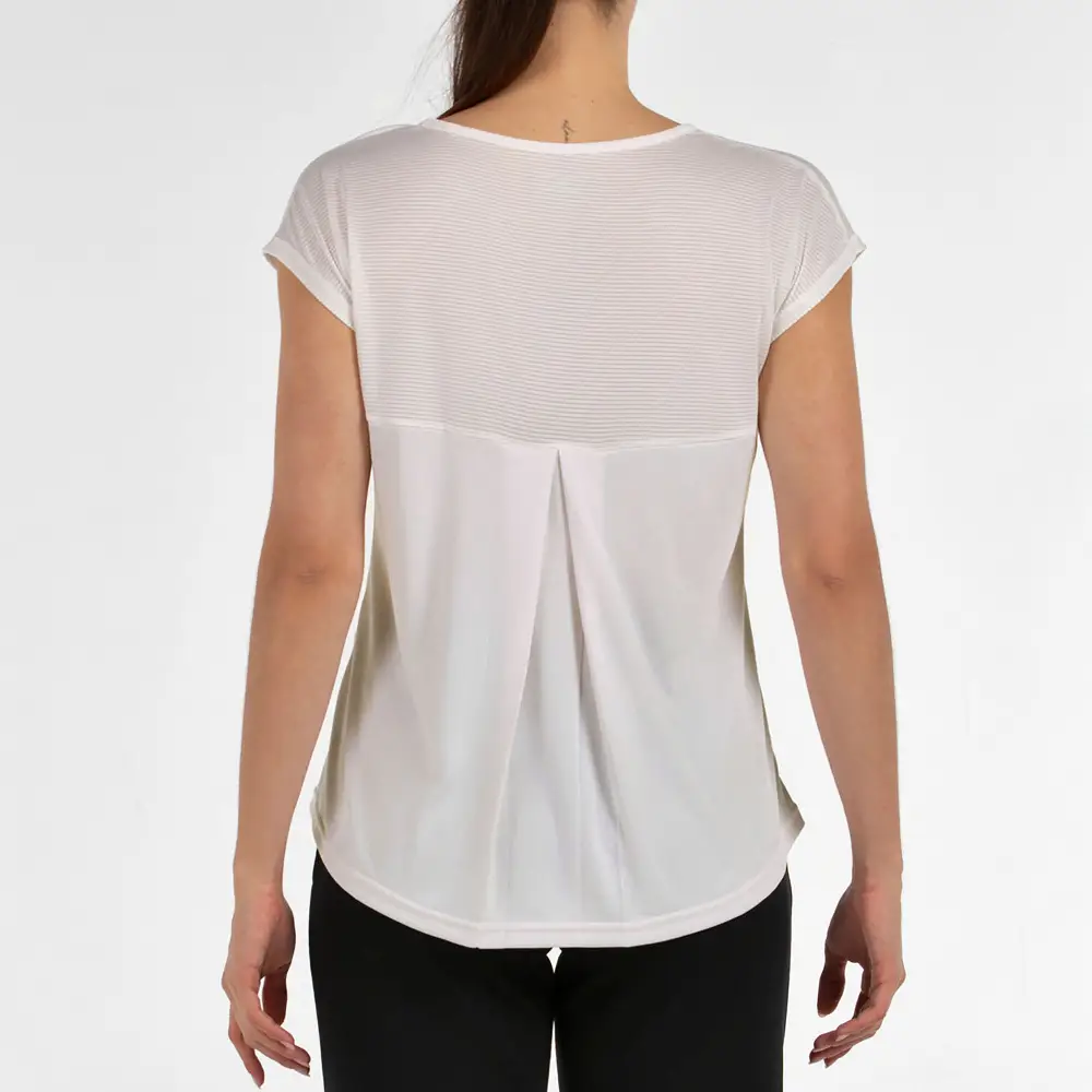 Camiseta técnica de mujer John Smith modelo PRÓXIMA en color blanco, diseñada para entrenamientos intensivos y actividades deportivas. Fabricada en poliéster transpirable con paneles de rejilla en hombros y mangas que favorecen la ventilación. Su corte femenino y tejido ligero ofrecen máxima comodidad y libertad de movimiento.