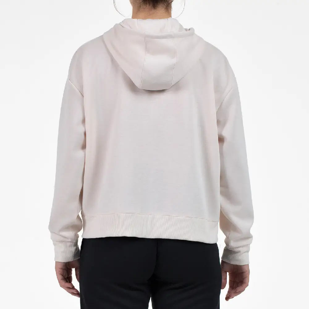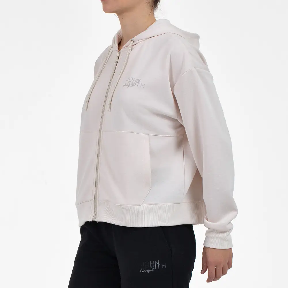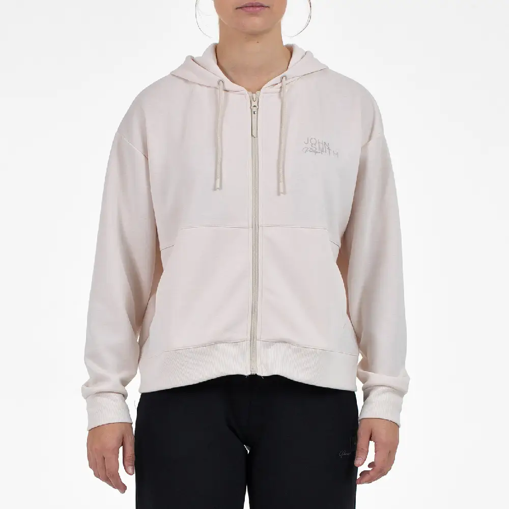 Experimenta la comodidad suprema con esta sudadera fluida, confeccionada en tejido de interlock de poliéster elástico y viscosa que garantiza una sensación suave y adaptable. Su diseño abierto con cremallera central, capucha práctica y bolsillos canguro hacen que sea perfecta para el día a día, mientras que los remates de rib en puños y bajo aseguran un acabado impecable. El logo en el pecho aporta un toque moderno y distintivo.